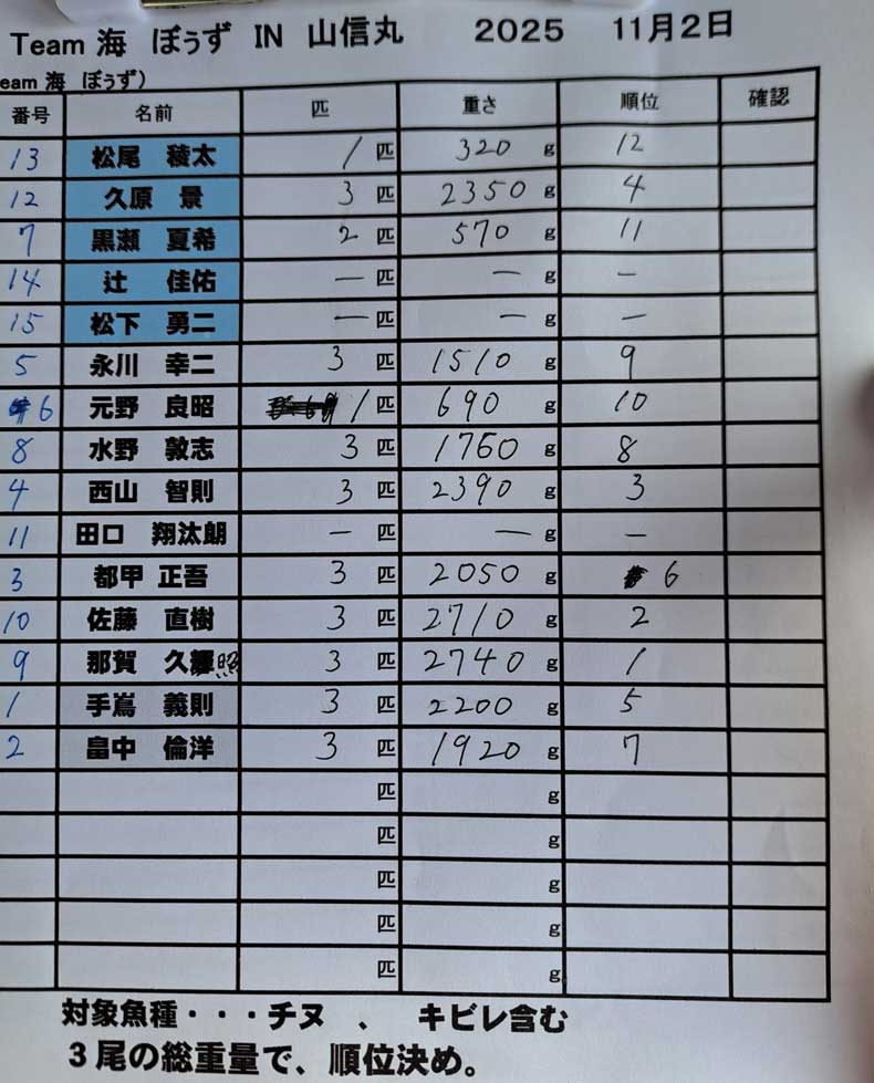 チーム海ぼぅずさんでオブザーバーと言ってもチヌ釣り大会には毎回参加しております(笑)