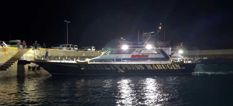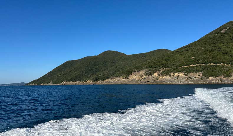 平戸宮之浦から渡船に乗り込み、宇久島の沖波止へ向かいます。