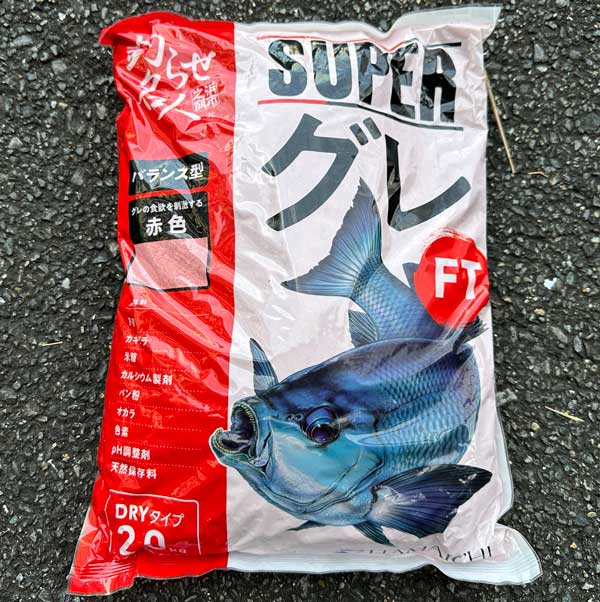 スーパーグレFTは、視認性、遠投性、集魚力に優れた集魚材です。色も赤ピンクでとても鮮やかで、潮の流れも非常に良く見えますし、仕掛けとの同調がやりやすく今、浜市イチオシの集魚材となっています。