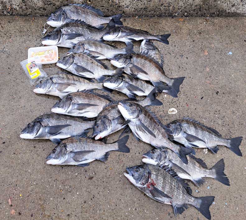 7時半過ぎから約5時間でGクリル遠投と釣らせダンゴチヌをローテーションしての釣果で、正月とお盆が1度に来たみたいな最高に恵まれた初釣りになりました