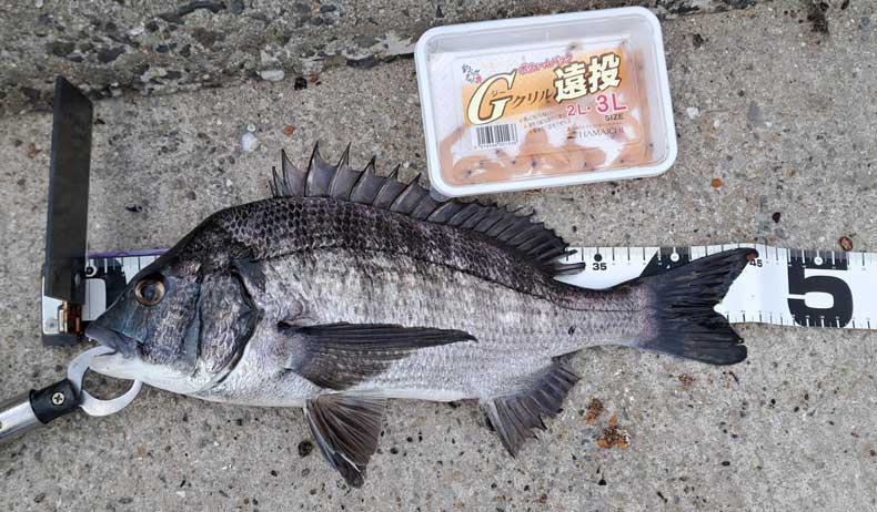 潮の流れはほぼなく3~4投目ぐらいでしたか早々に今年の初チヌが【Gクリル遠投】オキアミに反応してくれました