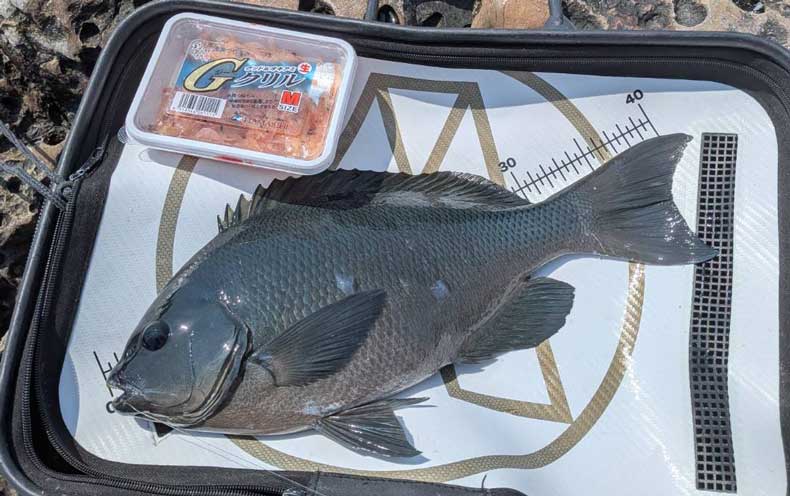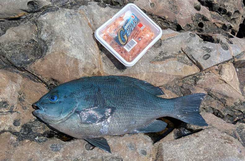 この日の当たりエサは、「Gクリル」。釣友もGクリルで40cmオーバーを釣り、大変気に入ってもらえました。