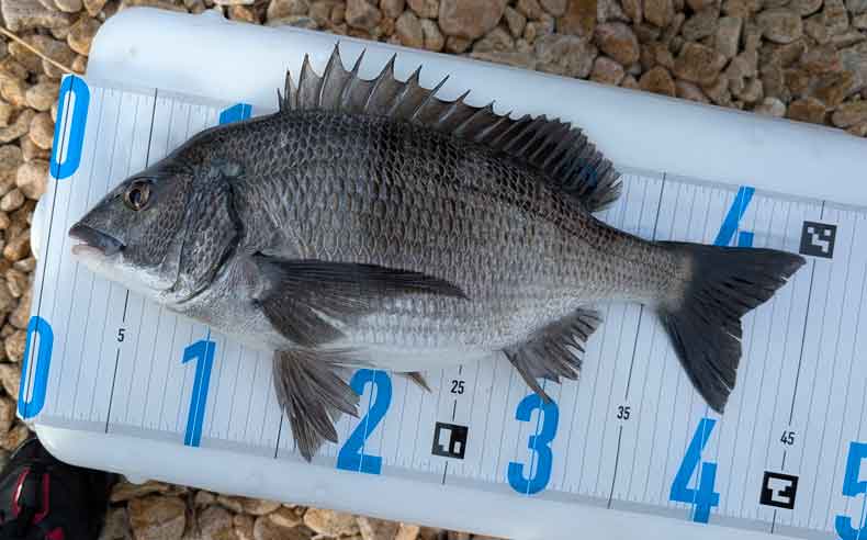 その後はマダイが活性化し、前半はチヌ2匹、マダイ3匹で折り返し